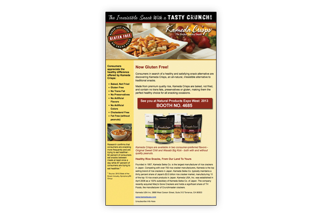 Japan’s leading rice cracker manufacturer recognized an opportunity to introduce America to their signature healthy baked snacks.